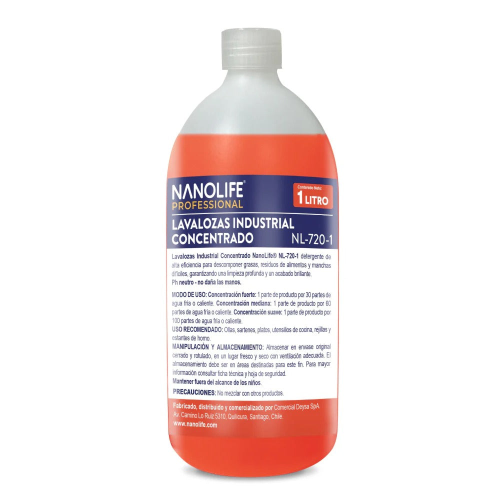 Lavalozas Industrial Concentrado NanoLife® NL-720-0 detergente de alta eficiencia para descomponer grasas, residuos de alimentos y manchas difíciles, garantizando una limpieza profunda y un acabado brillante. Hipoalergénico - no daña las manos.